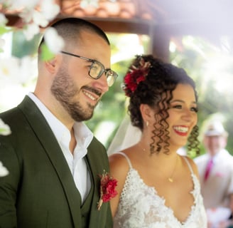 No início dos preparativos a gente nem pensou em contratar cerimonialista, mas aí conforme os outros fornecedores iam perguntando a gente se interessou e recebei a indicação do Aimê. Resolvemos contratar e eu posso dizer que é indispensável, vocês fizeram um trabalho impecável, isso me ajudou a ficar muito mais calma e tirou meu nervoso e insegurança quanto ao casamento. O tratamento com os convidados, com a gente e a atenção a cada detalhe que vocês deram foram incríveis... até os convidados elogiaram. Realmente o trabalho de vcs é necessário demais, eu amei demais e com ceteza é algo que eu jamais abriria mão. Recomendo supeeer!